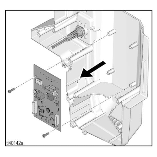 1. Carefully slide new control board into place on the side of the motor shroud. Secure with screws and torque to 8-10 inch pounds.
