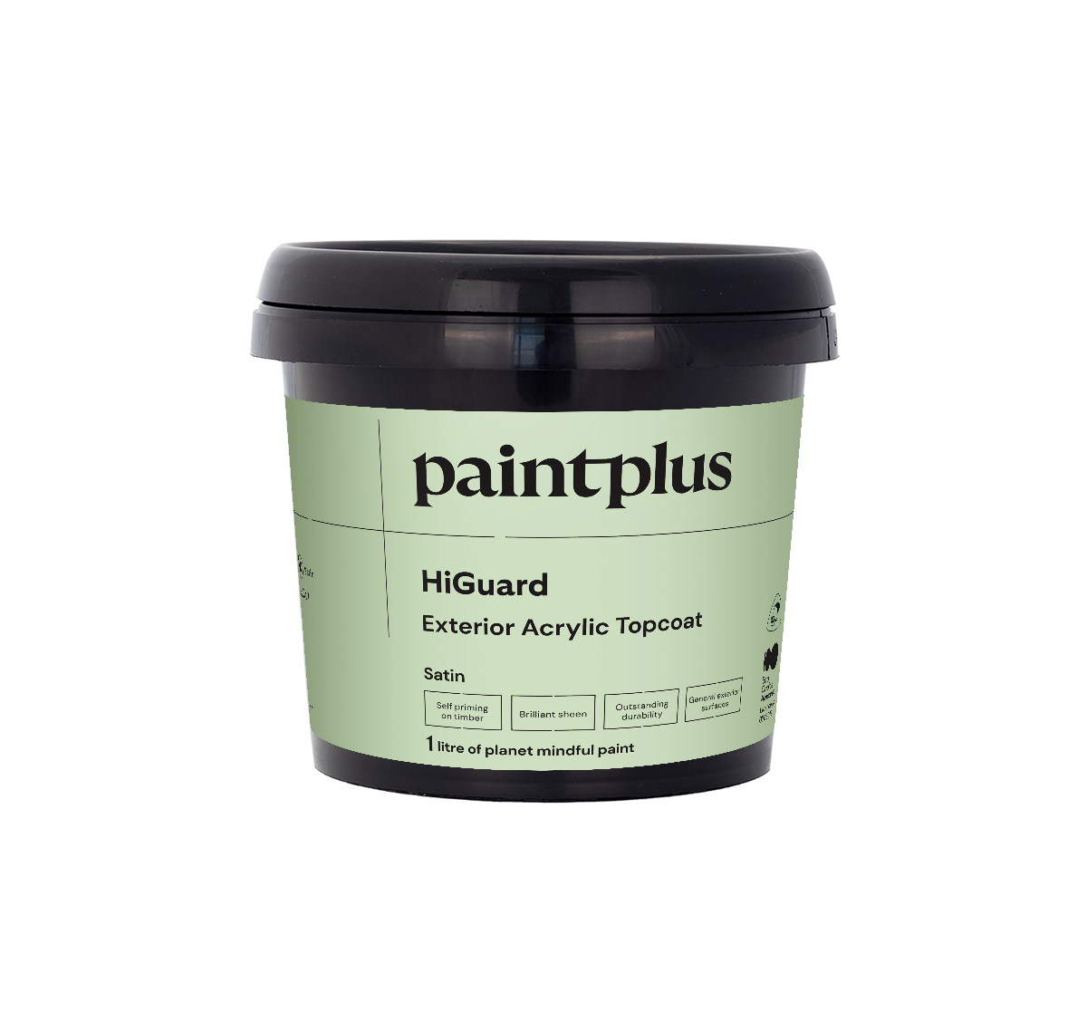 Paint+ HiGuard is a premium exterior acrylic. HiGuard is a 100% premium exterior acrylic, developed to give maximum durability in exposed conditions. It is designed to make application as effortless as possible and to give even coverage without sagging. These properties make it particularly suitable for coating most exterior surfaces. Available in Satin, Satin Ultra Deep, Semigloss, Semigloss Ultra Deep or Gloss finishes. Product features include: